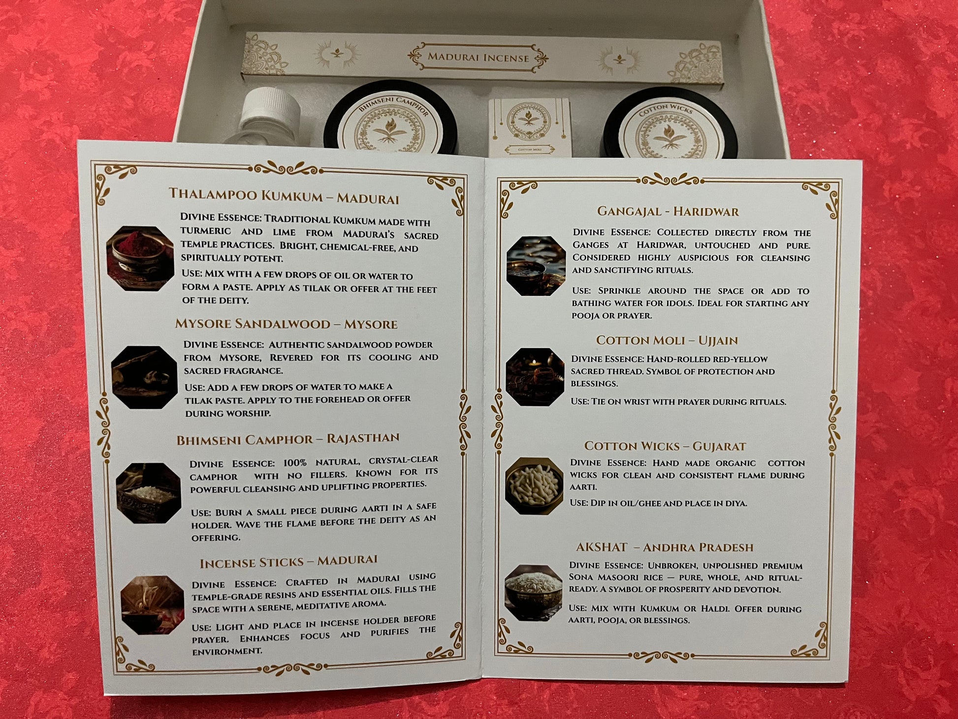 At Divya Roots, we believe true reverence begins with purity. Each item in this kit is more than just a product—it’s a ceremonial offering, handpicked from India’s most culturally rich regions, so you receive only the finest for your prayers.